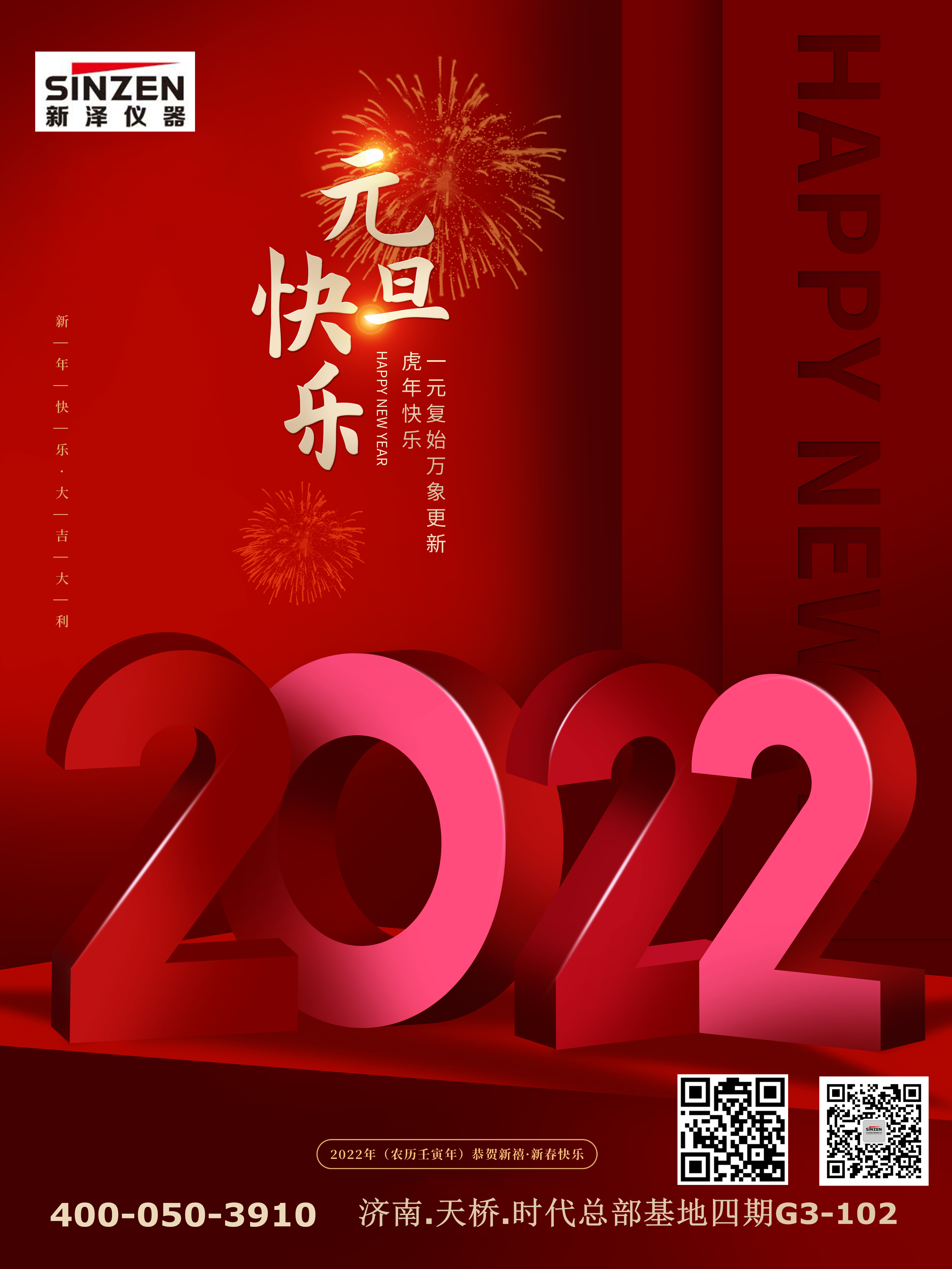盛世迎春山河秀,神州煥彩萬物新。正值辭舊迎新的美好時刻,山東新澤儀器有限公司向一直關(guān)心支持公司發(fā)展的各級領(lǐng)導和各界人士,向辛勤奮戰(zhàn)在工作一線的成員們,致以最衷心的新年問候和美好祝福!