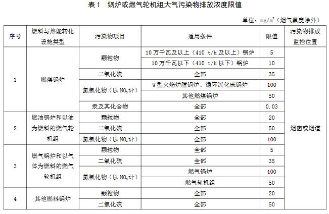 4.32020年1月1日起,所有鍋爐或燃氣輪機組執(zhí)行表2中的排放濃度限值。