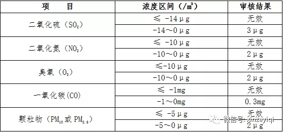 表1 監(jiān)測結(jié)果小時值負(fù)值及零值的處理要求