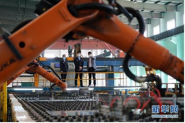 4月23日,河北省沙河市環(huán)境保護(hù)局執(zhí)法人員在河北鑫利玻璃有限公司內(nèi)向企業(yè)負(fù)責(zé)人了解企業(yè)生產(chǎn)情況。2019年起,有“中國玻璃城”美譽(yù)的河北沙河市啟動(dòng)了“煙羽消白”工程,先后投入20億元對(duì)在產(chǎn)玻璃生產(chǎn)線實(shí)施超低排放改造,并結(jié)合提升廠區(qū)環(huán)境、優(yōu)化產(chǎn)能等措施,削減粉塵、二氧化硫、氮氧化物等污染物排放,推進(jìn)大氣污染治理。 新華社記者 牟宇 攝