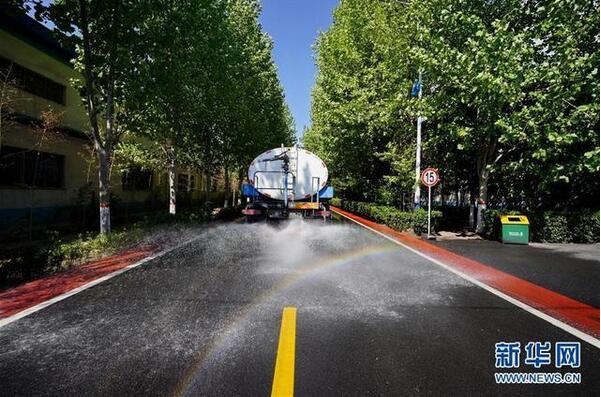 4月23日,灑水車在位于河北省沙河市的河北鑫利玻璃有限公司廠區(qū)內(nèi)灑水防塵。 2019年起,有“中國玻璃城”美譽(yù)的河北沙河市啟動(dòng)了“煙羽消白”工程,先后投入20億元對(duì)在產(chǎn)玻璃生產(chǎn)線實(shí)施超低排放改造,并結(jié)合提升廠區(qū)環(huán)境、優(yōu)化產(chǎn)能等措施,削減粉塵、二氧化硫、氮氧化物等污染物排放,推進(jìn)大氣污染治理。新華社記者 牟宇 攝