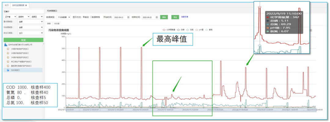 盤錦市生態(tài)環(huán)境局通過實戰(zhàn)比武,建立與公安前端信息會商機制,發(fā)揮各專業(yè)和職能優(yōu)勢對在線監(jiān)控線索排查和分析研判,實施精準打擊在線數(shù)據(jù)違法實戰(zhàn)行動。2022年9月執(zhí)法人員對在線數(shù)據(jù)異常線索深入調(diào)查中發(fā)現(xiàn),某石化有限公司污染源監(jiān)控平臺污染物濃度歷史數(shù)據(jù)曲線圖明顯異常。梳理線索后,執(zhí)法人員會同公安機關(guān)立即以“四不兩直”的方式進行現(xiàn)場檢查。通過現(xiàn)場檢查發(fā)現(xiàn),該企業(yè)存在出現(xiàn)故障不能及時維護到位,導(dǎo)致儀器長時間不能正常運行檢測等8項不正常運行自動監(jiān)控設(shè)施問題。經(jīng)過現(xiàn)場手工監(jiān)測比對分析,多項監(jiān)測數(shù)據(jù)比對結(jié)果超出標準范圍。目前,轄區(qū)執(zhí)法大隊已對存在環(huán)境問題立案調(diào)查。