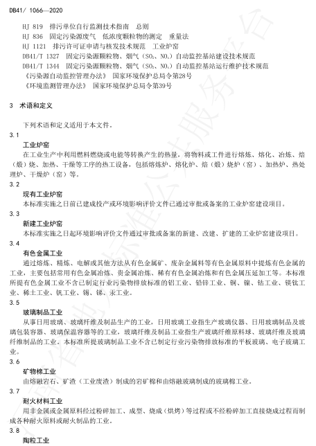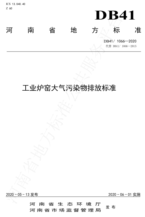 2020年4月10日,河南省市場監(jiān)督管理局、河南省生態(tài)環(huán)境廳在鄭州主持召開了地方標準審查會,對河南2015年發(fā)布的(DB41/1066-2015)進行了修訂。2020年5月19日,河南省市場監(jiān)督管理局以2020年29號公告批準發(fā)布了新修訂的《工業(yè)爐窯大氣污染物排放標準》(DB41/1066-2020),2020年6月1日起實施。