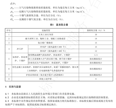 基準氧含量(O2):耐火材料工業(yè)燒成窯:18/%;剛玉類工業(yè)熔煉爐、以電能轉(zhuǎn)換產(chǎn)生熱量的各類爐窯:按實測濃度計;爐窯啟停階段(氧含量不低于19%的情形):按實測濃度計等。