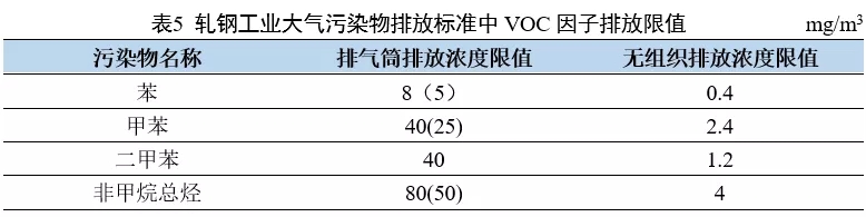 本標(biāo)準(zhǔn)包括在鋼材表面涂鍍金屬或非金屬的涂、鍍層鋼材的加工過程,因此類生產(chǎn)工藝過程中有揮發(fā)性有機(jī)物的排放,因此涉及揮發(fā)性有機(jī)物排放限值要求。括號(hào)內(nèi)代表特別排放限值,下同。