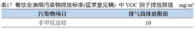 《餐飲業(yè)油煙污染物排放標(biāo)準(zhǔn)(征求意見稿)》中對(duì)于VOC的要求見下表。