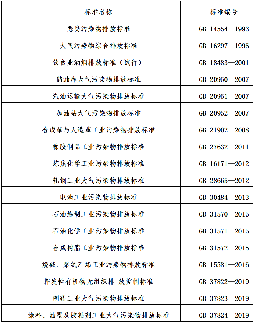 18項VOCs相關(guān)國家排放標準