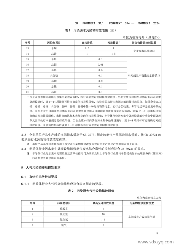 經(jīng)上海市人民政府批準(zhǔn),《半導(dǎo)體行業(yè)污染物排放標(biāo)準(zhǔn)》(DB31/374-2024)為上海市地方污染物排放標(biāo)準(zhǔn),現(xiàn)予以發(fā)布。2024年5月1日起實(shí)施。