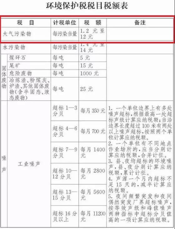 環(huán)境保護(hù)稅的稅目、稅額,依照本法所附《環(huán)境保護(hù)稅目稅額表》執(zhí)行。