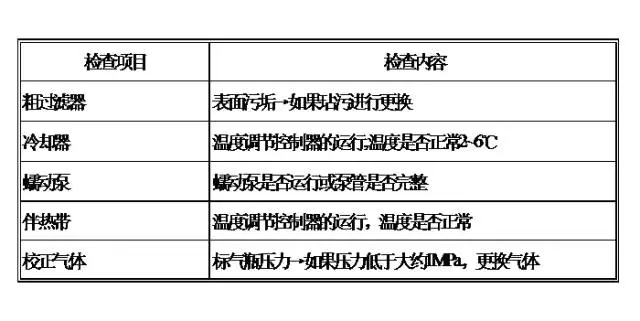 B:雙通道冷腔入口堵住看看轉(zhuǎn)子流量計(jì)能否歸零,如不歸零,則冷腔有漏氣現(xiàn)象,無(wú)漏氣的情況下則說(shuō)明冷腔完整,漏氣的位置一般在密封圈處或者排水的蠕動(dòng)泵的排水泵管破裂或脫落。蠕動(dòng)泵已損壞密封不嚴(yán)密,處理方法是壓緊罩杯更換密封圈;更換蠕動(dòng)泵排水泵管或者重新連接,更換蠕動(dòng)泵。