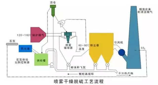 半干法脫硫包括噴霧干燥法脫硫、半干半濕法脫硫、粉末一顆粒噴動床脫硫、煙道噴射脫硫等。