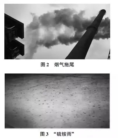 隨著環(huán)保排放要求提高后,對氨法脫硫系統(tǒng)進行提高標準操作控制,二氧化硫排放質量濃度可以達到35mg/m3超低排放水平,但煙氣拖尾和“硫銨雨”現(xiàn)象越來越嚴重,煙氣拖尾有時長達數(shù)百米,造成的二次視覺污染成為環(huán)保的關注焦點,散落的“硫銨雨”對周邊設備造成嚴重腐蝕(見圖2 和圖3)。