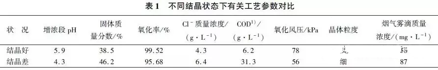 (1)通過多點加氨系統(tǒng)。嚴格控制脫硫液pH為4.5~5.5、增濃段溶液pH為5.2~6.0,為增濃液中硫酸銨結晶創(chuàng)造良好的弱酸性環(huán)境。