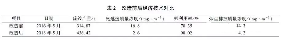 氨法脫硫裝置經(jīng)改造和運行優(yōu)化后,提高了氨利用率。多循環(huán)深度洗滌裝置的應用,使回收的硫酸銨產(chǎn)量有所增加,氨法脫硫裝置的經(jīng)濟性得到提升。表2為改造前后的經(jīng)濟技術對比。