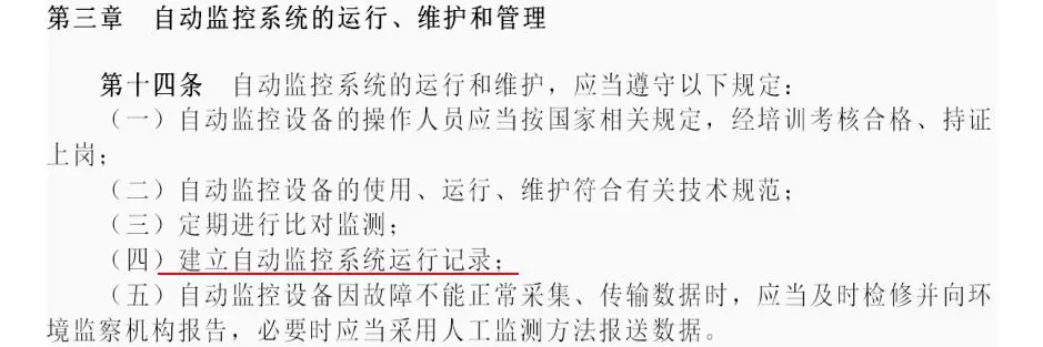 1、《污染源自動(dòng)監(jiān)控管理辦法》中要求建立自動(dòng)監(jiān)控系統(tǒng)運(yùn)行記錄,在線監(jiān)測(cè)記錄直接反應(yīng)自動(dòng)監(jiān)控系統(tǒng)運(yùn)行情況。