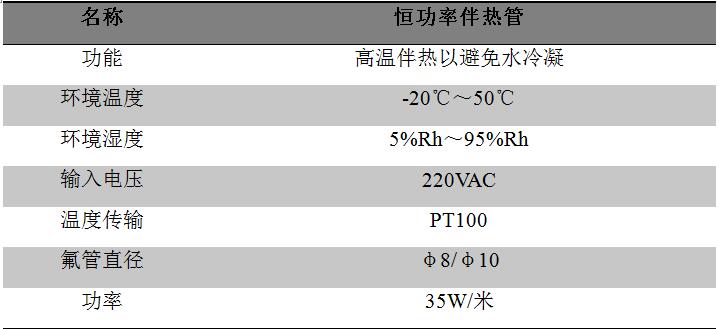 自限溫電熱帶的自動限溫功能,可以保證采樣管內維持一定的恒溫,保證采集樣品與初始值保持基本一致,最終確保系統(tǒng)連續(xù)、正確的采集樣氣。根據采集樣氣的成份、溫度等實際情況,采樣導管可以選用不同材質,電熱帶可以根據用戶選型選用高、中、低溫的產品,另外根據功能配置各種導線等。