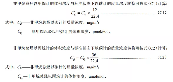 注:(1)以上各參數(shù)區(qū)間劃分以參比方法測量結(jié)果為準(zhǔn)。(2)F.S.表示滿量程。(3)非甲烷總烴排放濃度單位換算按照如下公式換算