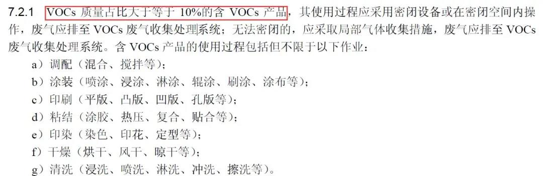 無組織收集:鼓勵(lì)源頭削減,企業(yè)使用的原輔材料和產(chǎn)品中VOCs含量占比小于10%(質(zhì)量含量),根據(jù)本標(biāo)準(zhǔn)的相關(guān)規(guī)定豁免相應(yīng)的措施要求;可不要求采取無組織排放收集措施。
