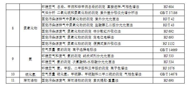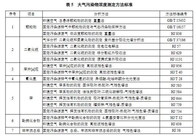 2.4 大氣污染物的分析測定采用表5 中所列的方法標準。
